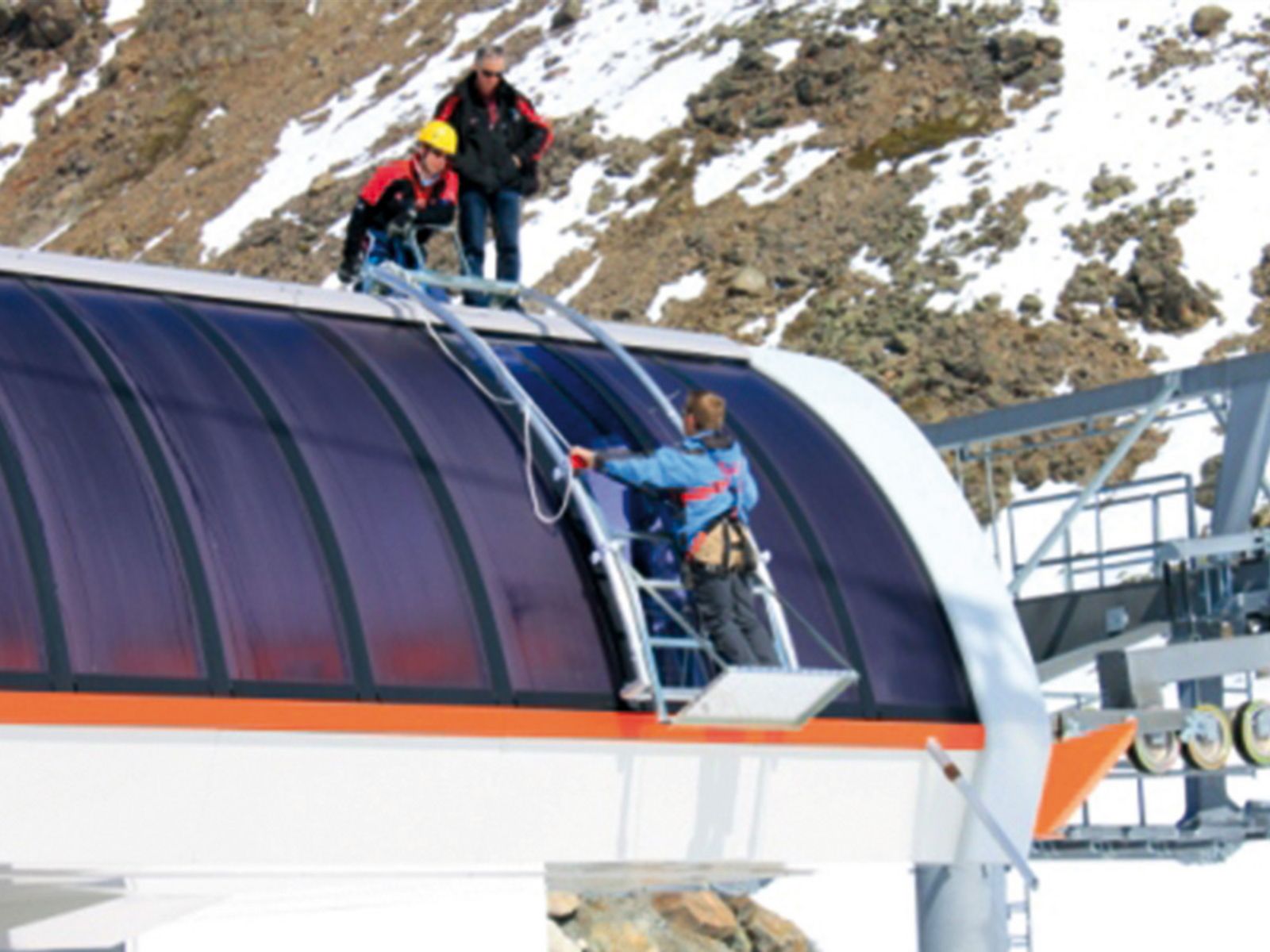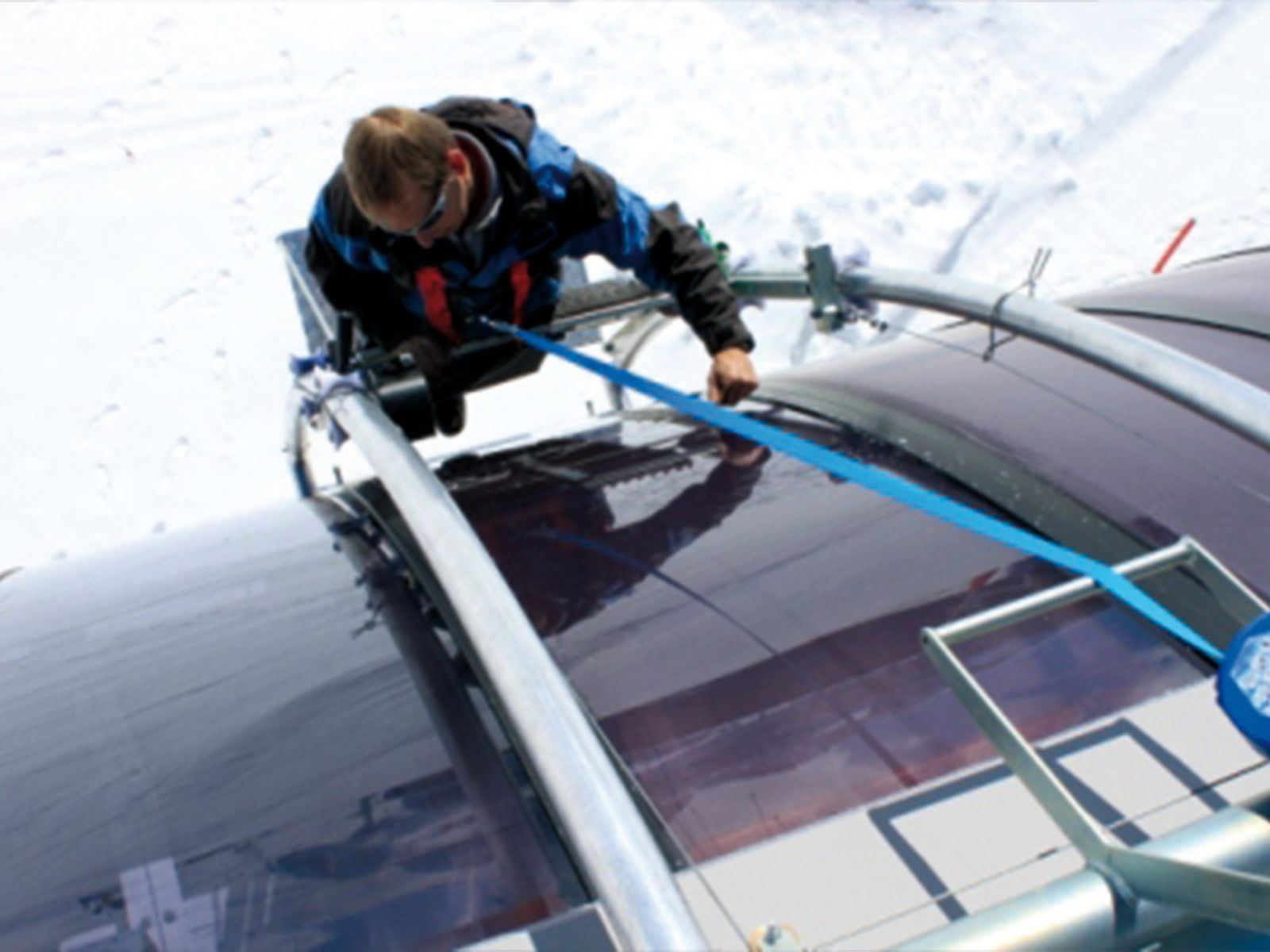 Arbeitsprozess - Dachscheiben aufpolieren & mit UV-Schutzfolie folieren - Bergbahnen Shuttleberg