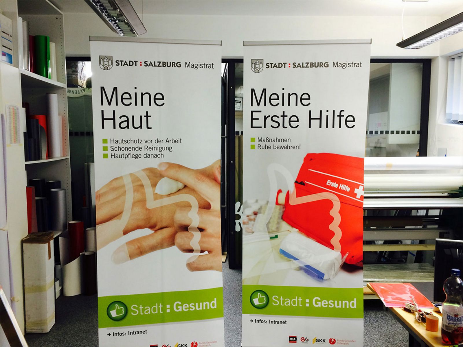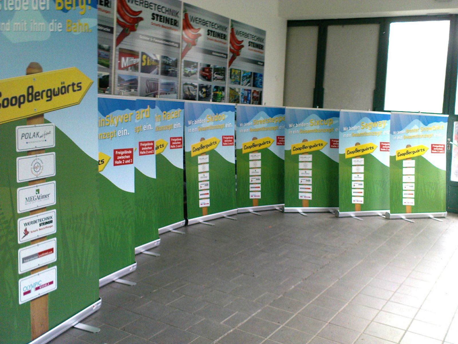 Für Messen, Veranstaltungen, oder als Werbung/Infostand in der eigenen Firma. Durch das einfache und handliche System sind Rollups leicht zu transportieren und aufstellen.