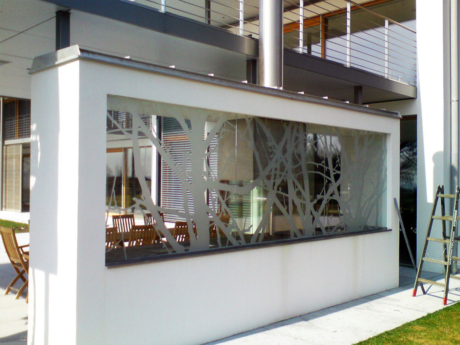 Um dem Abhilfe zu schaffen arbeiten wir seit vielen Jahren mit speziellen Folien und Techniken, um diese Offenheit und Helligkeit in Räumen beizubehalten, jedoch auch einen gewissen (Sicht)Schutz zu gewähren.