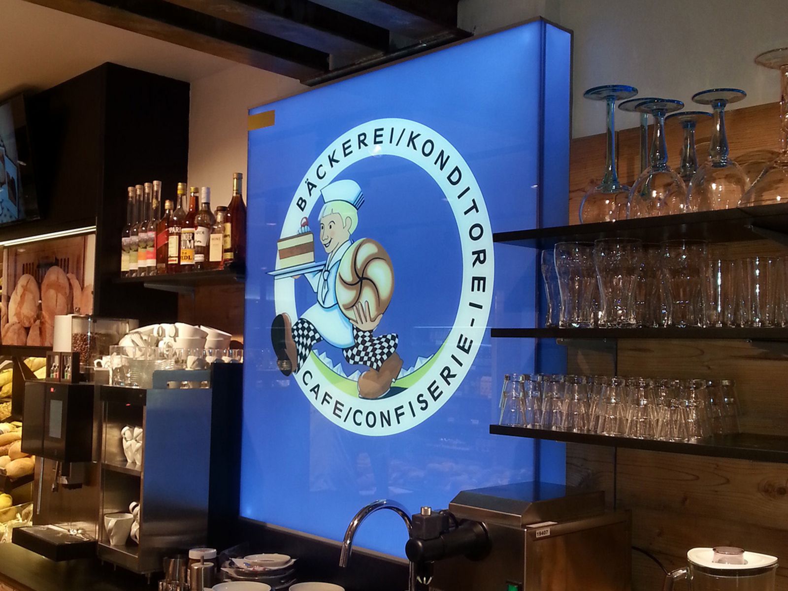 LED-Leuchtkästen auf Fassaden, freistehende Leuchtwürfel, auskragende doppelseitige Steckschilder, dekupierte und mit Plexiglas hinterlegte Alukästen, hinterleuchtete Bilder im Innenbereich, leicht wechselbare Spanntuchkästen – um nur einen kleinen Teil unserer Anwendungen auf dem Gebiet zu nennen.